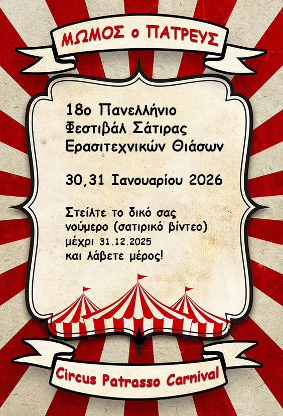 Έως 31/12/2025 η κατάθεση των υποψηφιοτήτων και των σατιρικών δρώμενων για τον Μώμο 2026 από τις ερασιτεχνικές ομάδες
