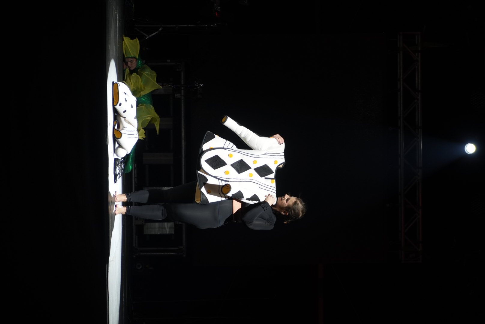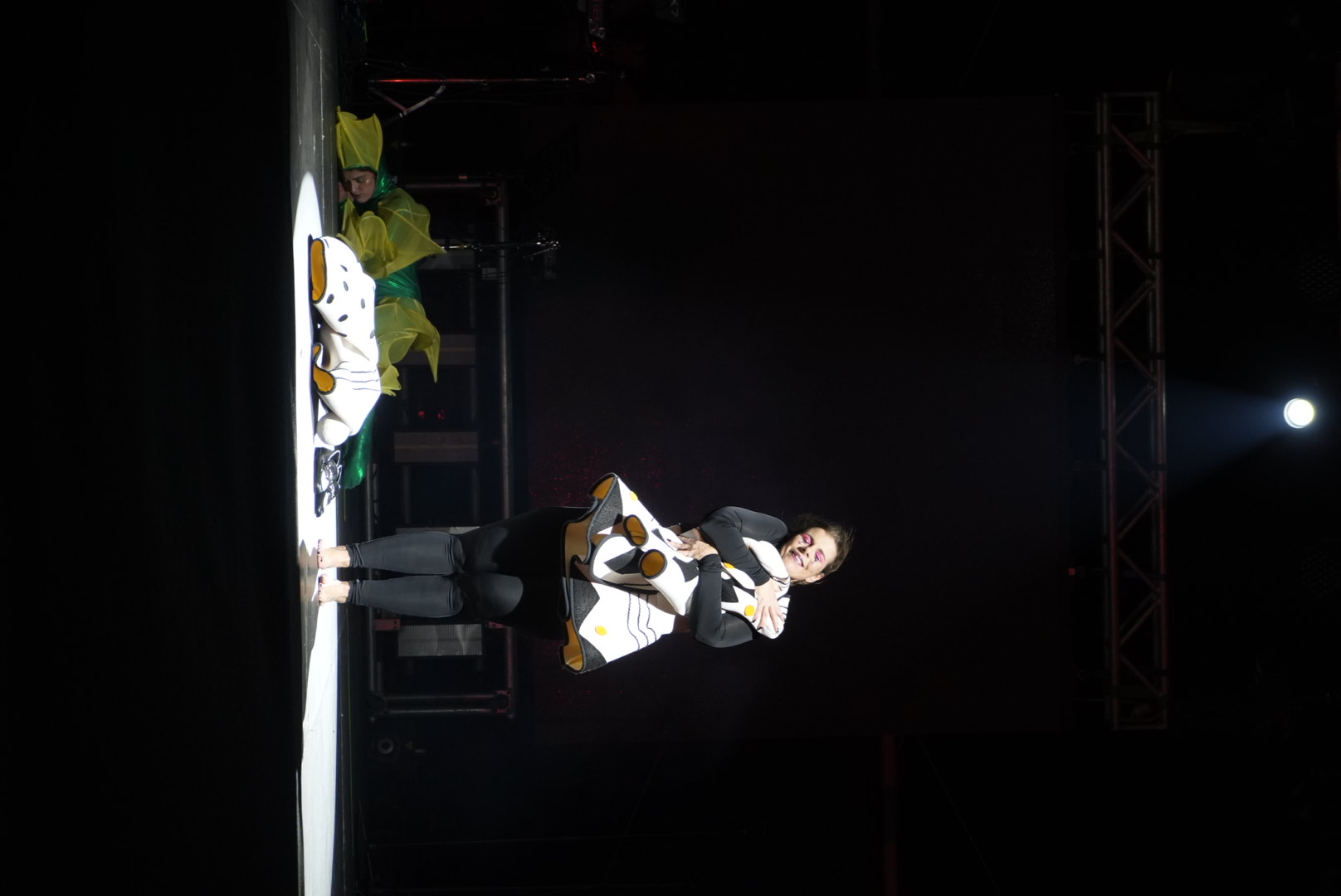 Πριν το επίσημο τελετουργικό της τελετής λήξης, ένα θαυμάσιο θεαματικό σόου με ακροβατικά από καλλιτέχνες τσίρκου που είχαν έναν «διάλογο» χωρίς λόγια με την τελάλισσα του Πατρινού Καρναβαλιού Μαρία Αγουρίδη άφησε εξαιρετικές εντυπώσεις. Το πνεύμα του Καρναβαλιού, το ξωτικό προσπαθεί να πείσει την Τελάλισσα να συνεχίσει σε ρυθμό Καρναβαλιού, όμως αυτή ξέρει ότι πρέπει να ξεκουραστεί και να ανανεώσει το ραντεβού για του χρόνου βγάζοντας την αποκριάτικη στολή της.