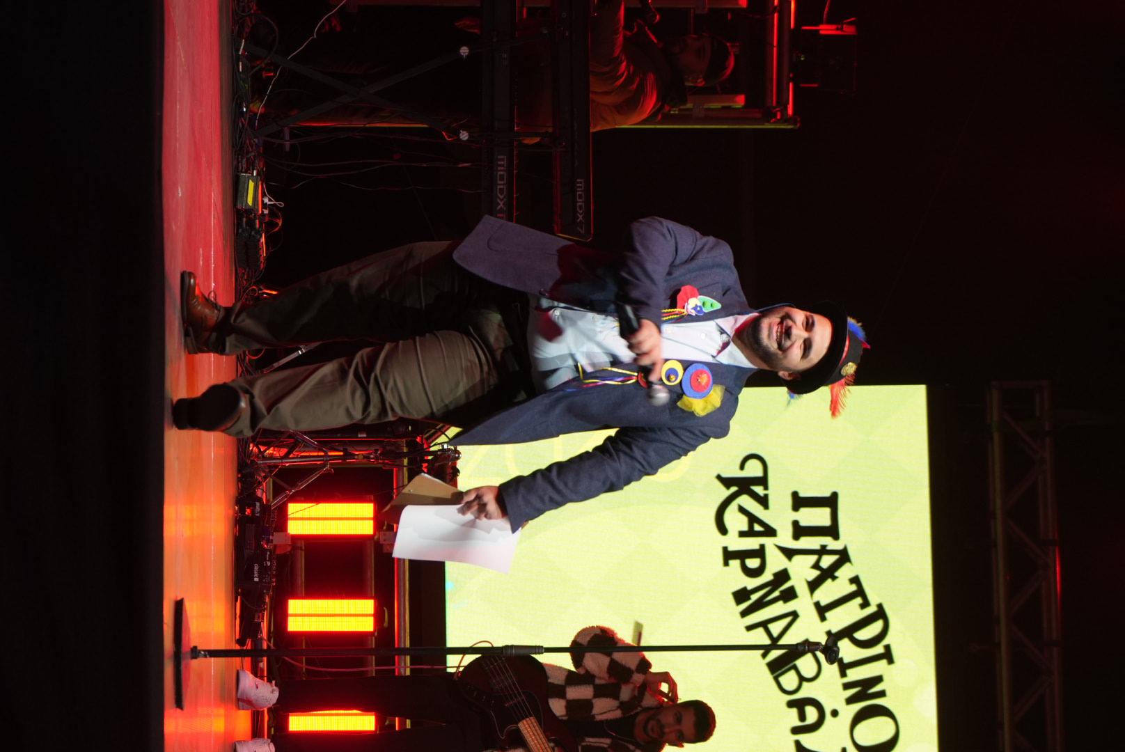 Ο παρουσιαστής της Τελετής Δημήτρης Μουλίνος με τον δικό του, ξεχωριστό και εξωστρεφή τόνο μας θύμισε κορυφαίες στιγμές της φετινής διοργάνωσης (Κρυμμένος Θησαυρός, Καρναβαλουπόλεις, Φεστιβάλ Παιδικού τραγουδιού, Καρναβάλι Μικρών, εκδηλώσεις στην περιφέρεια της πόλης).