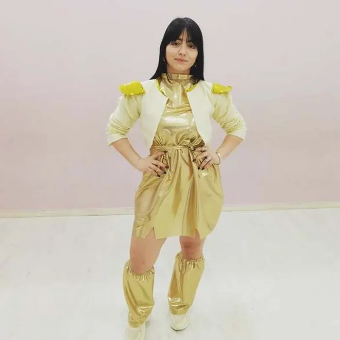 Η στολή είναι εμπνευσμένη από την πολυσυζητημένη έκφραση’ six – seven’ και το τραγούδι ‘gold’ της πολυαγαπημένης ταινίας huntrix!