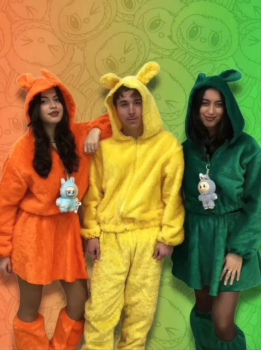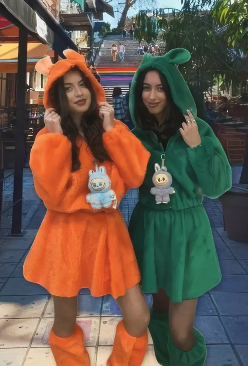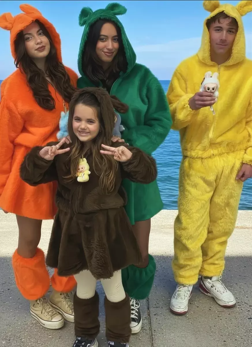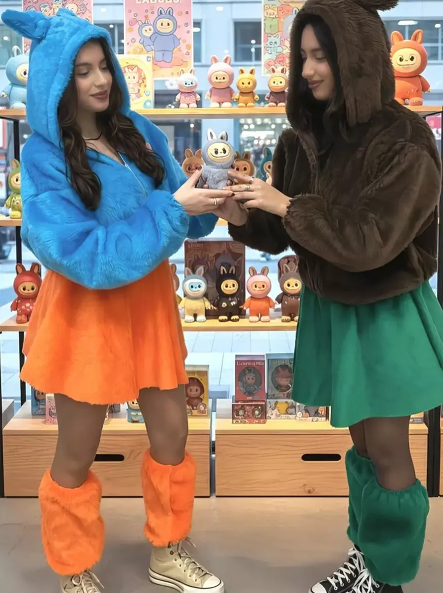Με γούνινη ,πολύχρωμη και χουχουλιάρικη στολή που προσφέρει ζεστη στις χειμωνιάτικες παρελάσεις.